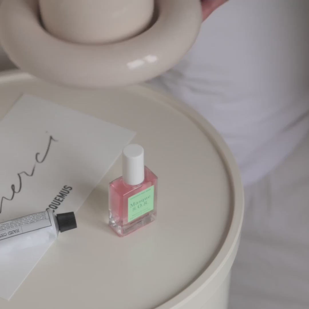 At night, apply the S.O.S Mask in a thick layer two to three evenings per week. Let dry, then remove in the morning by peel-off or with soapy water.