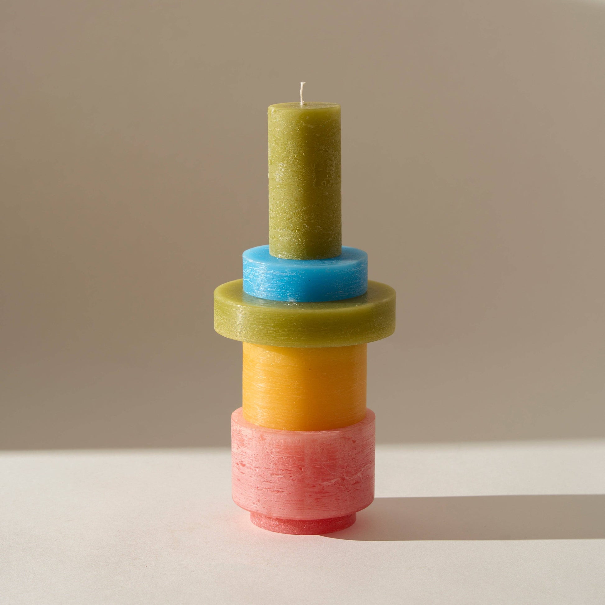 The CANDL STACK 03 is a robust 5-piece set by Stan Editions, combining functionality and creativity. Built from separate stackable modules, each candle can be arranged into sculptural compositions, while two modules act as holders without wicks.