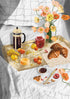 Breakfast in bed, made into a puzzle. A gourmet September morning bathed in golden light: a tray filled with treats against crisp white sheets. A design that is both delightful and challenging.